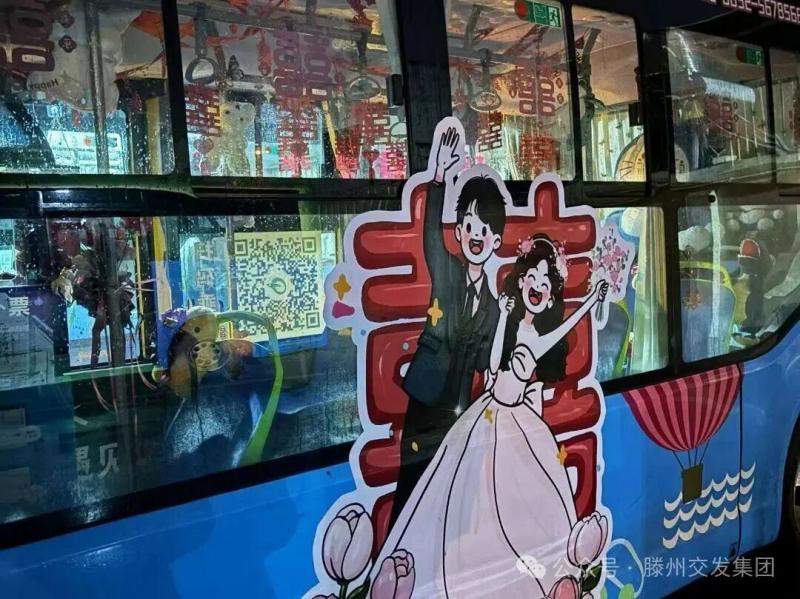 走進(jìn)公交“寶寶巴士”,喜慶與萌趣更是撲面而來。車內(nèi),嬌艷的鮮花簇?fù)碓谧闻,粉紅與大紅交織出溫柔的儀式感;“囍”字拉花纏繞著車頂與吊環(huán),隨風(fēng)輕晃間增添了幾分靈動;哆啦A夢等可愛毛絨玩偶乖乖“坐”在座位上,圓滾滾的模樣仿佛正為新人歡呼。車外,新人專屬的卡通造型貼于車身兩側(cè),畫中兩人笑容燦爛、手牽著手,滿是幸福模樣。這份萌趣外觀與喜慶氛圍的完美融合,引得路過市民紛紛駐足,舉起手機(jī)定格這份獨(dú)一無二的浪漫。