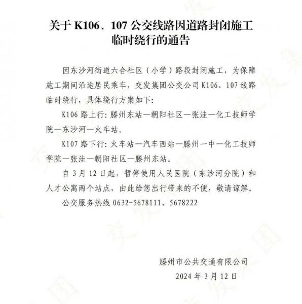 關(guān)于K106、107公交線路因道路封閉施工臨時(shí)繞行的通告