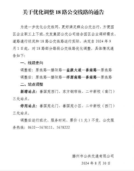 關(guān)于優(yōu)化調(diào)整18路公交線(xiàn)路的通告